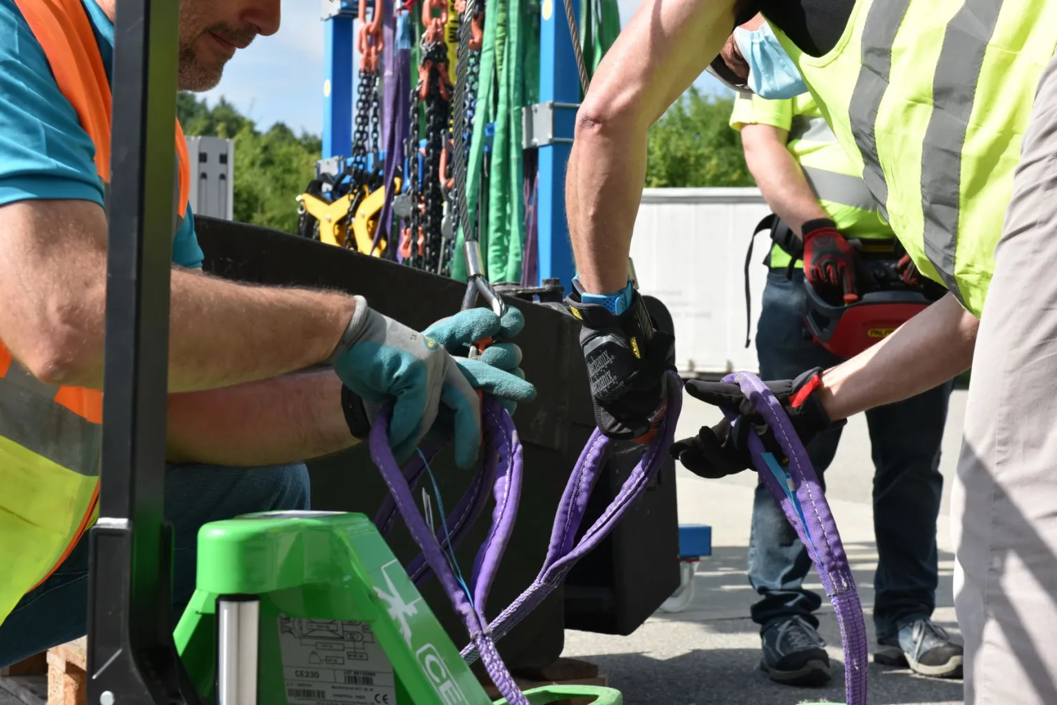 – Les participants utilisent les moyens de levages en sécurité